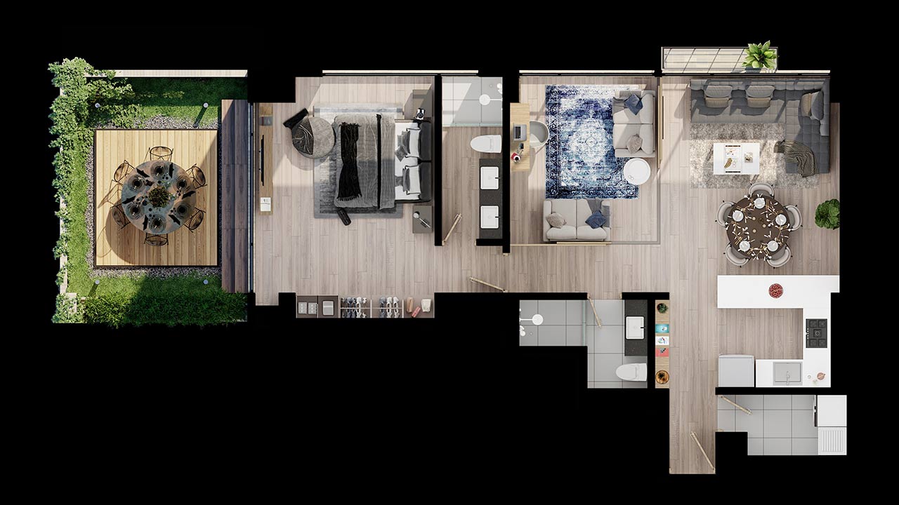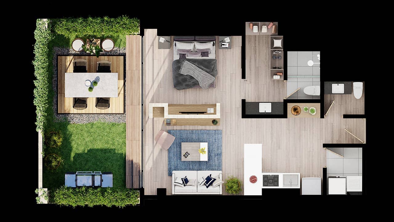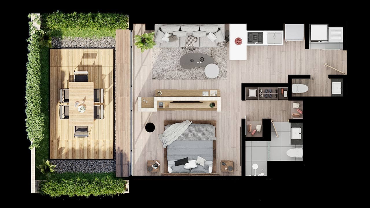 Bilanka es un nuevo proyecto que combina la arquitectura, los acabados y la experiencia de vivir en un lugar único. Apartamentos de 2.80 m de altura. Terrazas con jardines, Zonas de BBQ, de TRX y Centros de Fuego son algunas de sus características