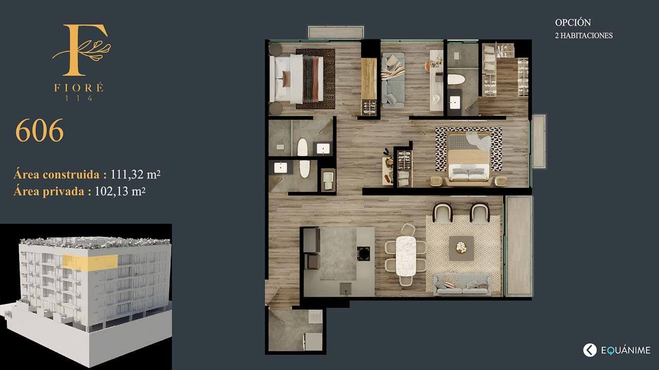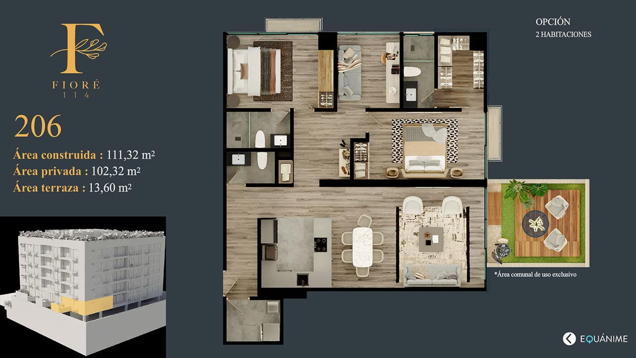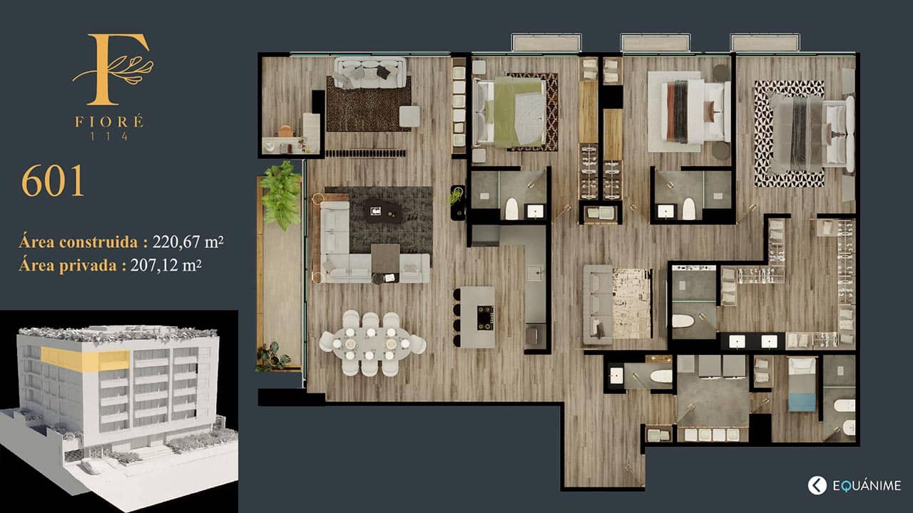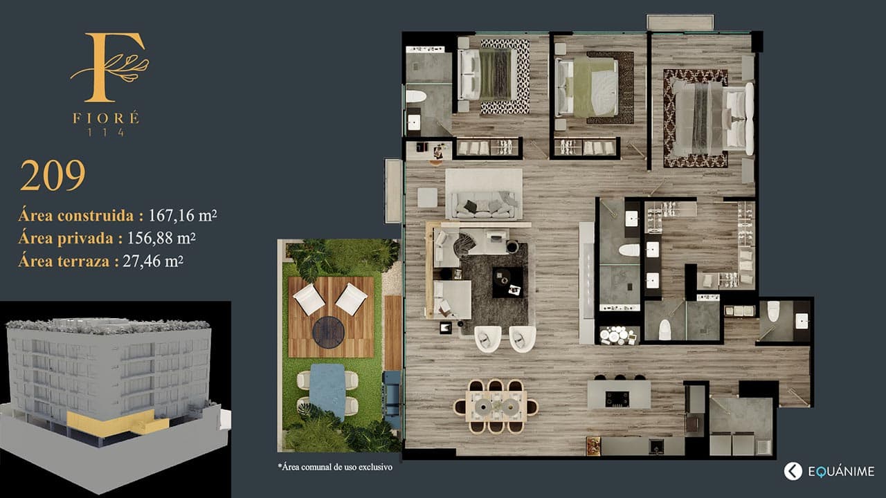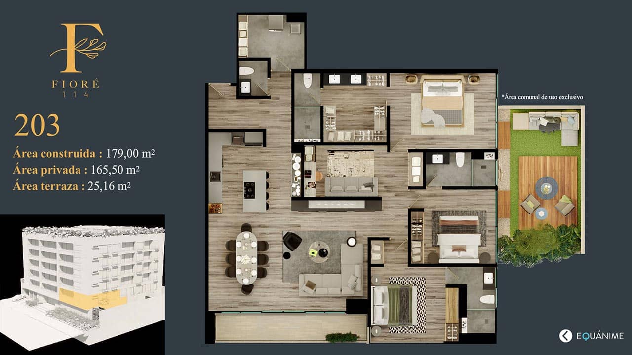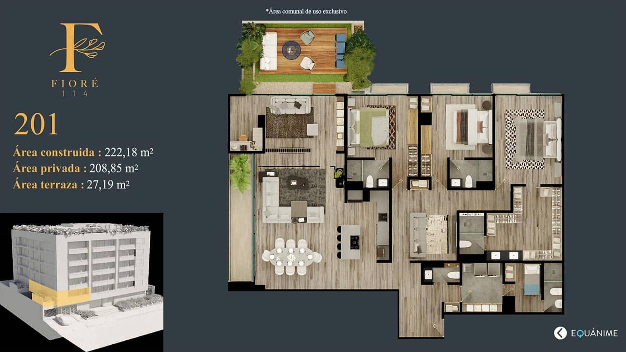 Fioré 114 destaca por la elegancia que integra la naturaleza creando un ambiente ideal para tener la calidad de vida que soñamos, con más de 1300 m2 para compartir; reunirá familias y amigos en espacios increíbles.