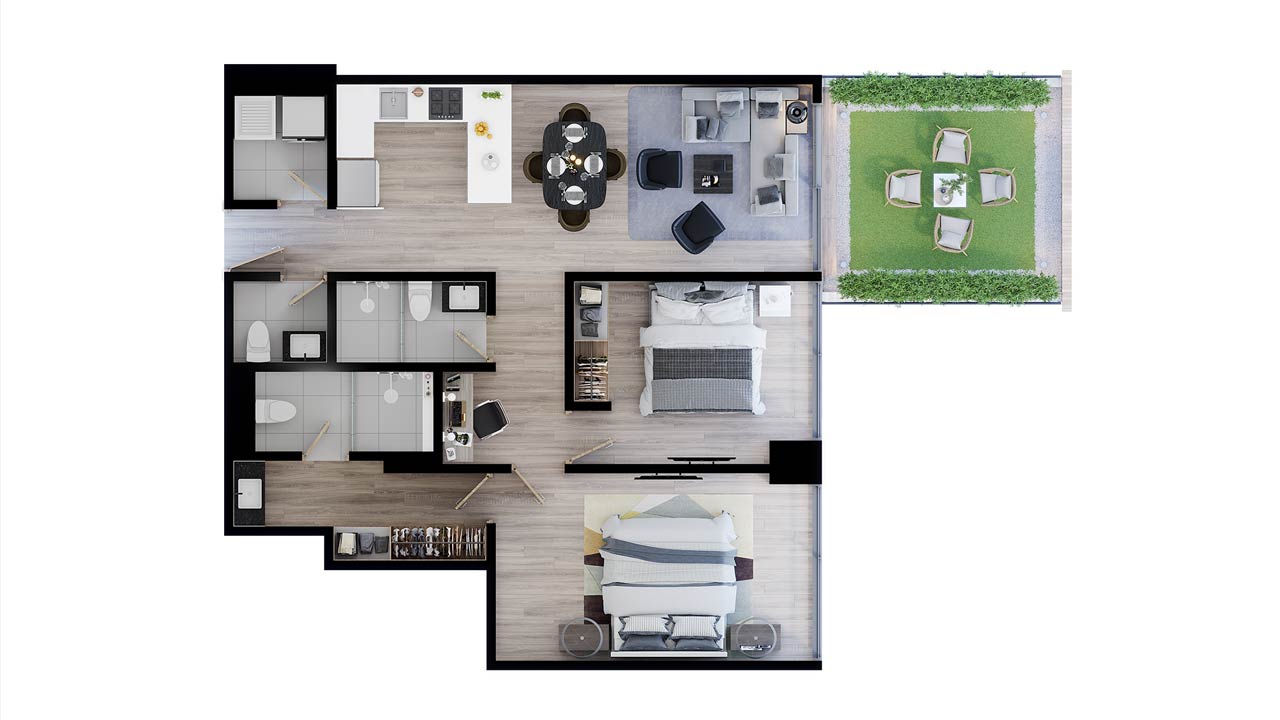 Pensado para familias que buscan espacios innovadores. Vive QUO 106, con una terraza de más de 550 mt2 con los mejores espacios para ti y tu familia!.